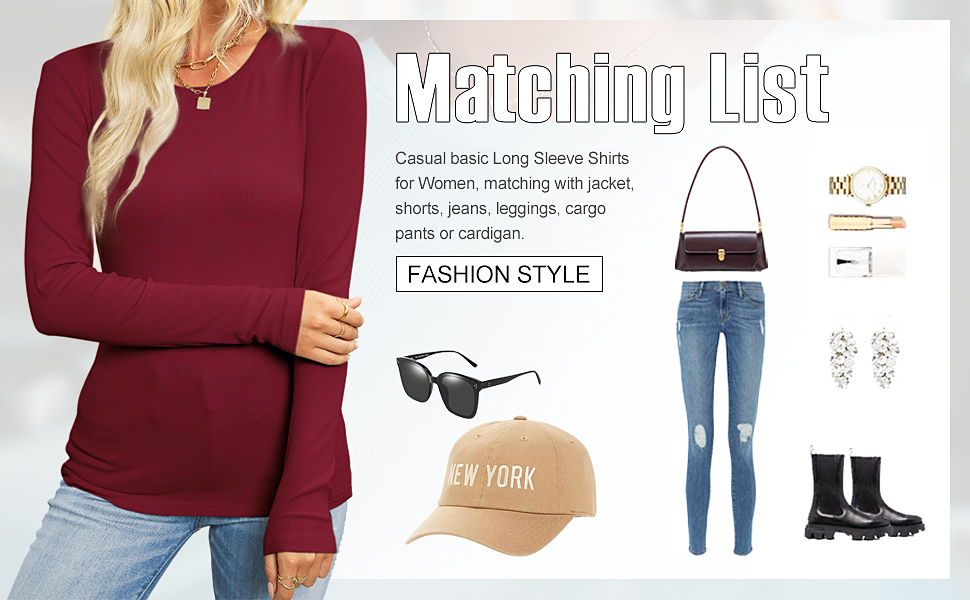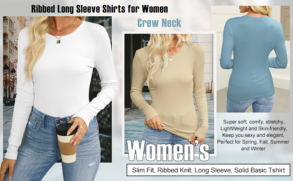 - Slim Fitted Tops, Crew Neck Long Sleeve T-Shirts, Long Sleeve Top Ribbed Knit, Long Sleeve Top Rib, Ribbed knit shirts, Basic Sexy and elegant tops for women, can help you cover your pear shaped figure and better shape your figure.