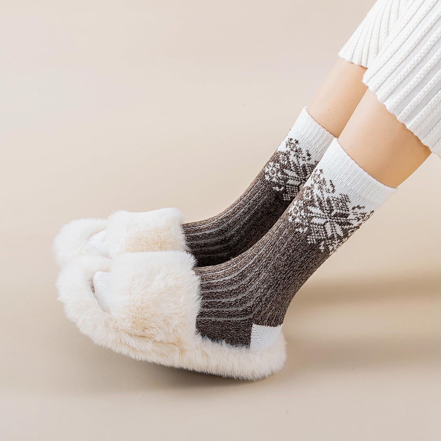 Sock Amazing Fashion Fuzzy Socks for Women Thermal Socks Winter 4 Pairs Thick Cozy Super Soft Socks Crew