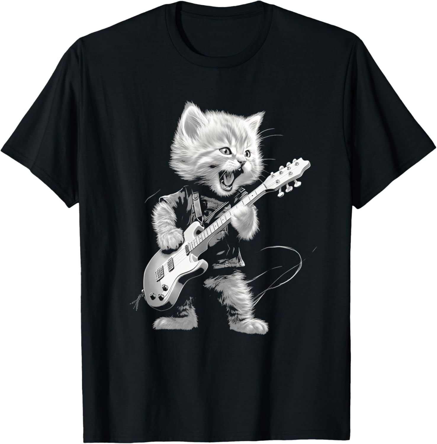 Rock Cat Playing Guitar Funny Guitar Cat Design Mens Womens T-Shirt